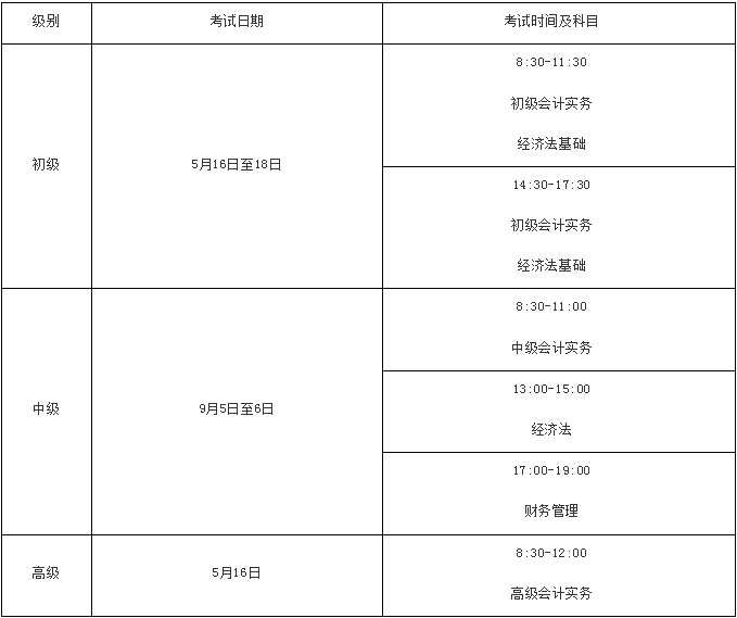 4、2026年5月16日至18日,组织初级会计资格考试,5月16日组织高级会计资格考试。